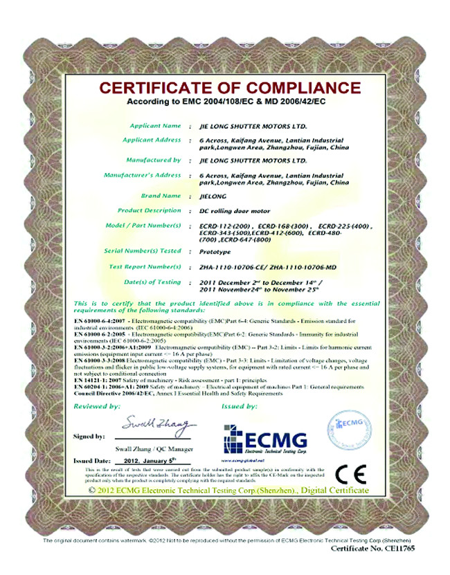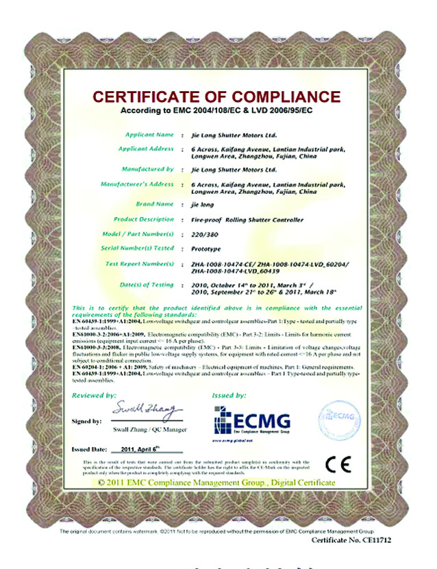 ▲in 2000, in the competition of National Fire Products Industry Chamber of Commerce, Jielong "fire rolling door motor and control system both be selected for "first choice products "